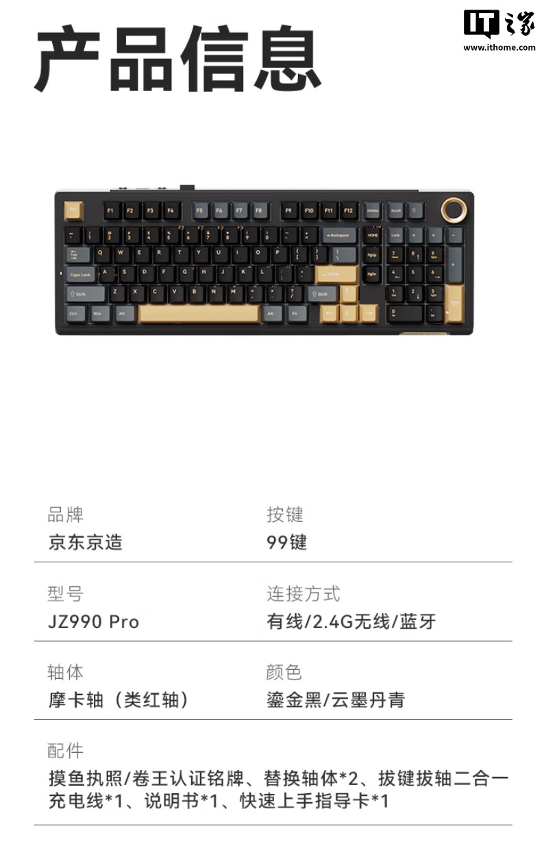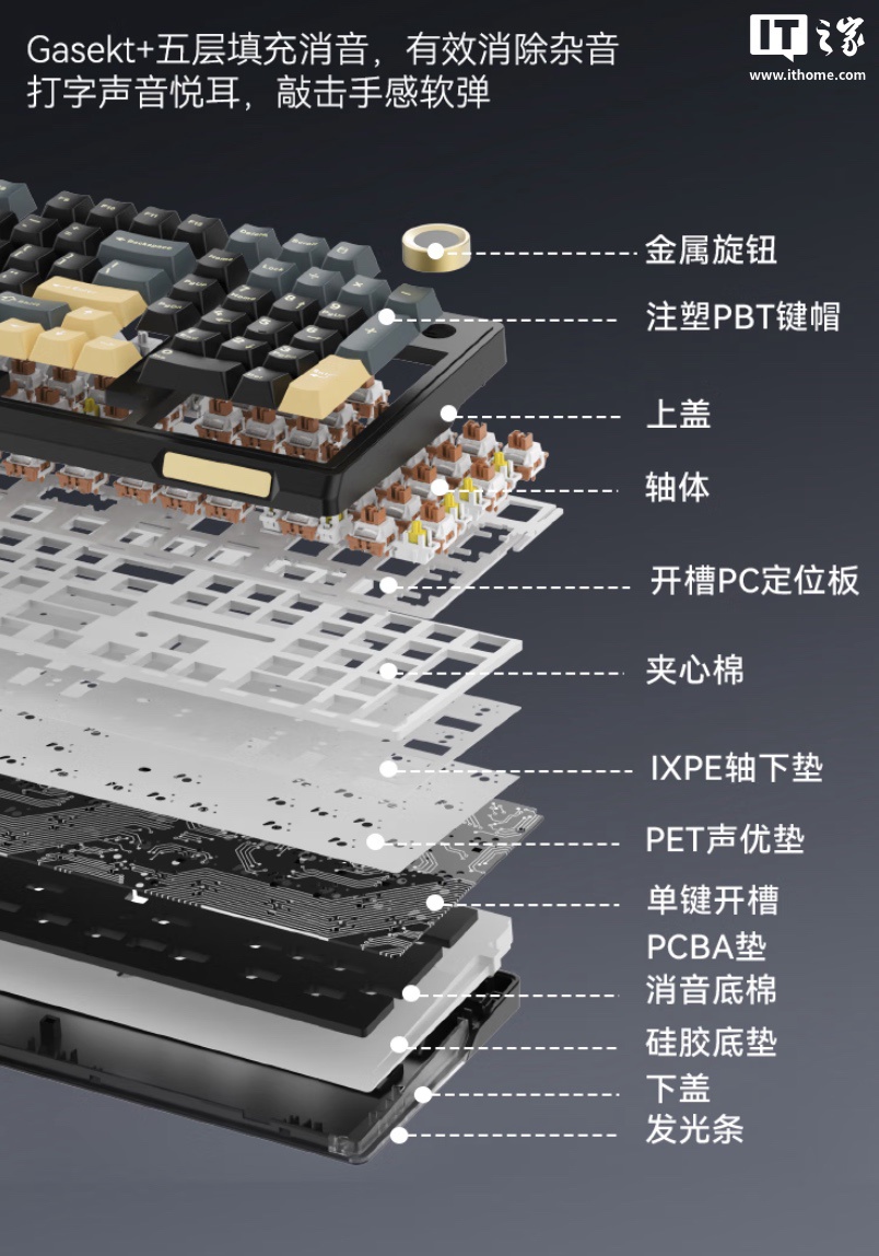 ▲ 云墨丹青系列键盘采用 Gasket 结构,京东京造现已上架一款 JZ990Pro 三模机械键盘,